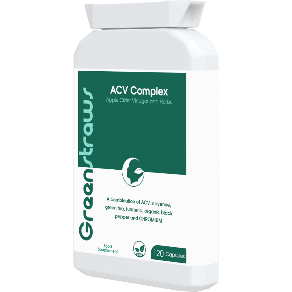 ACV Complex is a herbal weight management and digestive health combination. This food supplement has been formulated with a specialist blend of synergistic herbs and nutrients. Each capsule combines 400mg of apple cider vinegar powder with cayenne, ginger root, turmeric, green tea leaf, organic black pepper and chromium.