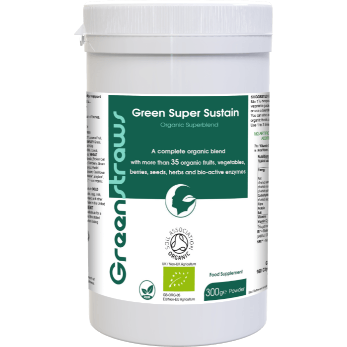 Our organic Green Super Sustain is no ordinary super-green shake. This unique organic registered foods combination contains a whopping 35+ organic food-based ingredients including 11 green foods, 8 fruits and berries, 7 vegetables, 2 herbs and seeds, 7 sprouts and mushrooms. It comes with naturally high food form vitamin C content which is great for your immune system, collagen formation, protection against oxidative stress, and for high energy levels. It is also high in dietary fibre which supports healthy, regular bowel movements.