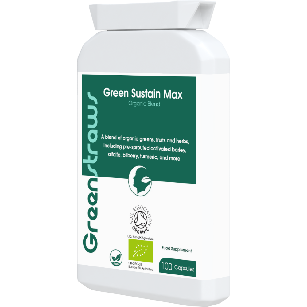 Green Sustain Max is a Soil Association-certified organic and vegan multi-nutrient blend, in easy-to-take capsules. The easiest and quickest way to organic fruits, berries, vegetables, sprouts, seeds and herbs, and bio-active enzymes on a daily basis with one convenient food supplement.