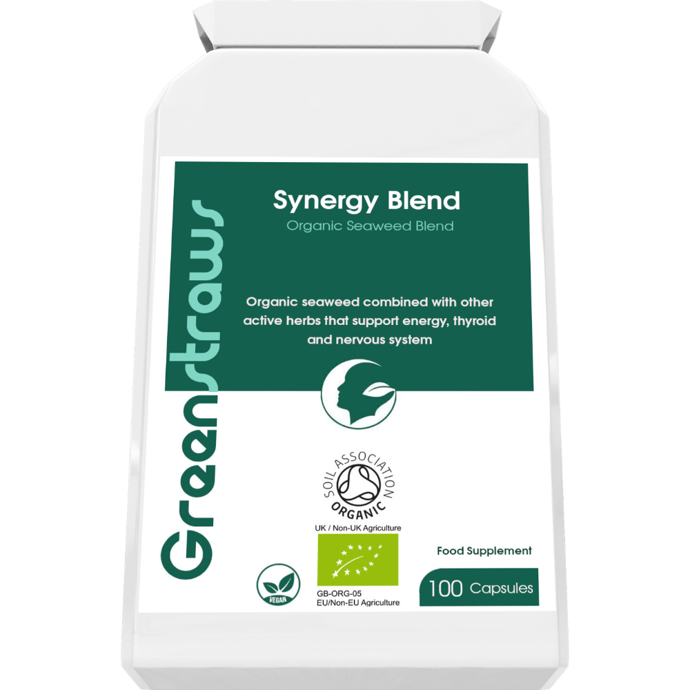 Synergy Blend is an organic seaweed, vegetable, and herbal formula, which combines the best of what the sea and Earth’s soil have to offer. This Soil Association organic food supplement offers a unique blend of iodine-rich, food-approved seaweeds (Ascophyllum nodosum and Fucus vesiculosus), with a range of vegetables and herbs: artichoke, chlorella, green tea leaf, spirulina, ashwagandha root and cayenne.